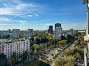 Квартира с балконом и видом на тихую аллею длиной около 2 км, с фонтаном в центре. Аллея обустроена для отдыха и спорта, есть велосипедная дорожка и тренажёры у дома.
