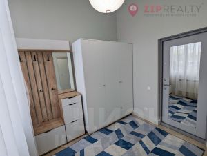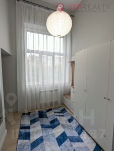 Помещение расположено на четвертом этаже кирпичного дома. Студия уже укомплектована мебелью, установлен кухонный гарнитур с холодильником и встроенной плитой, а совмещенный санузел оборудован стиральной машинкой. Обустроены стильная прихожая и уютная спальня с решениями для хранения ваших вещей.