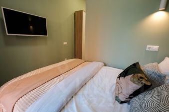 В апартаментах есть всё необходимое для комфортного проживания. Косметический ремонт, мебель в комнате и на кухне. Из техники: холодильник, телевизор и стиральная машина. Санузел совмещённый, оборудован душевой кабиной. Окна выходят на улицу, поэтому в квартире всегда светло и уютно.