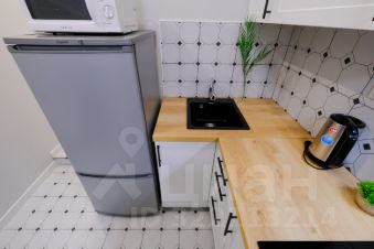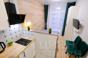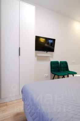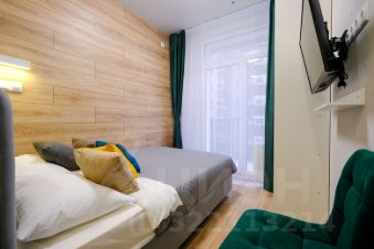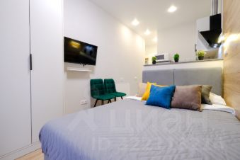 В апартаментах выполнен качественный евроремонт. Студия полностью меблирована: удобная мебель на кухне и в комнате. В вашем распоряжении холодильник, телевизор и стиральная машина, поэтому в квартире есть всё необходимое для комфортного проживания. Санузел совмещённый и оборудован душевой кабиной. Окна выходят во двор, что обеспечивает тишину и уют.