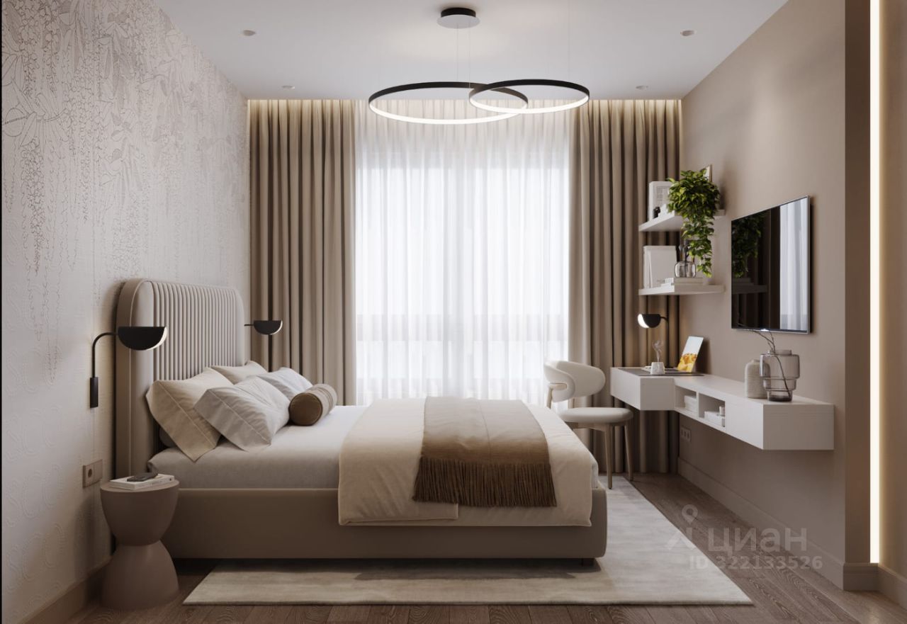 Квартира находится на 31 этаже 32-этажного дома, поэтому из окон открывается приятный вид.