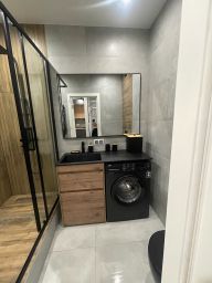 Качественный ремонт (возведены стены из блоков вместо гипсокартона, заменены радиаторы отопления). Вся необходимая мебель и встроенная бытовая техника присутствуют, также установлен бризер, 2 кондиционера и фильтр для воды.