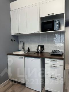 Уютная студия в гостиничном комплексе, с благоустроенной территорией и местами отдыха. В студии проведён хороший ремонт, установлена вся необходимая мебель и техника. Для наших гостей есть всё необходимое для комфортного проживания, средства гигиены, постельное бельё, полотенца, посуда. Всё чтобы можно было отдохнуть после трудного рабочего дня. В здании комплекса есть спортзал, бесплатный для наших гостей и охраняемая стоянка под вашим окном.