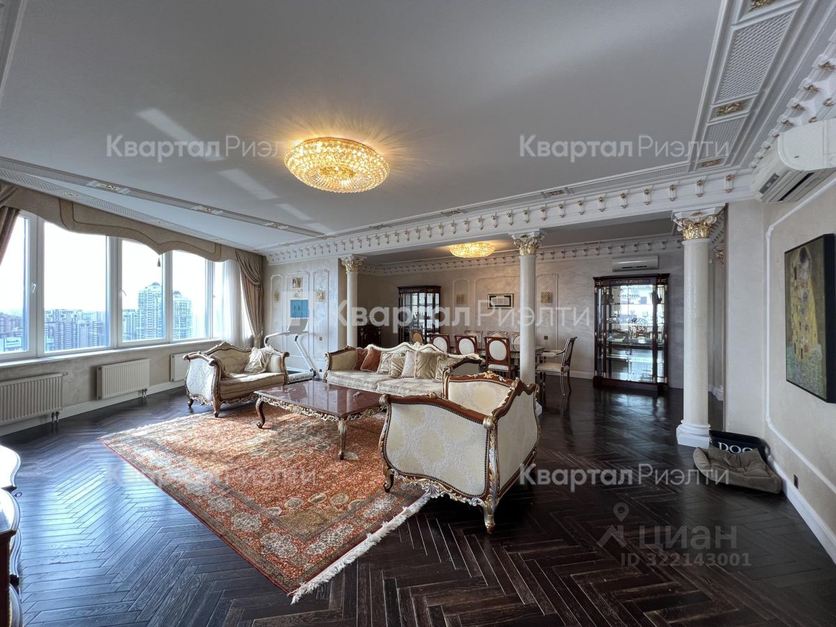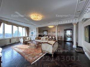 Просторная четырёхкомнатная квартира в доме бизнес-класса с потрясающим видом на МГУ. Две спальни с собственными ванными комнатами. При двух комнатах имеются гардеробные. Огромная гостиная (больше 80 метров) функционально разделена на четыре зоны: обеденная, зал, кабинет и зона отдыха у панорамного окна, выделенная подиумом. Кухня оснащена всей встроенной бытовой техникой и большим количеством зон для хранения. Гостевая ванная комната (все в квартире 4 санузла), широкая прихожая и холл со встроенными шкафами.