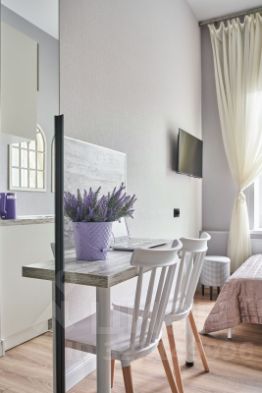 5. Кстати, у нас прекрасный скоростной Wi-Fi и смарт ТВ. Приготовить завтрак вы сможете на небольшой, но функциональной кухне. Для этого есть все необходимое: кастрюля, сковорода, набор столовых приборов и посуда.
