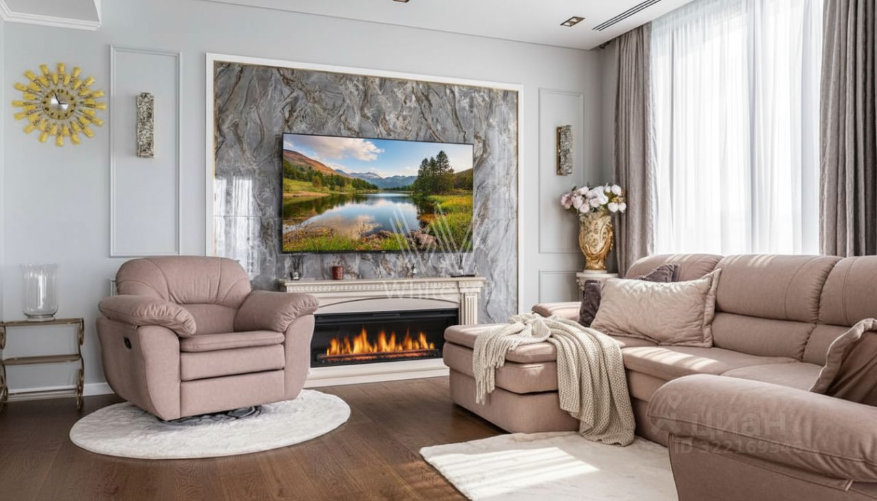 В гостиной — зона отдыха, утопающая в бархате. Здесь хочется включить новый сериал и раствориться в сливочном облаке подушек.