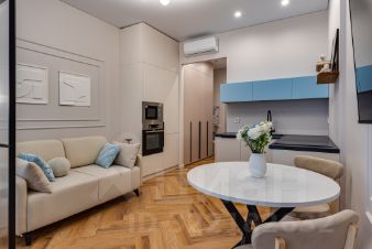 В квартире сделан дизайнерский ремонт, который создает атмосферу уюта и комфорта. Здесь есть все необходимое для комфортного проживания: кондиционер, холодильник, телевизор, стиральная и посудомоечная машины. Мебель расположена как в комнате, так и на кухне. Санузел совмещенный, оборудован современной душевой кабиной. Проведен интернет, поэтому вы всегда будете на связи.