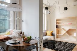 Очень красивые апартаменты с необычным подходом в дизайне, главной особенностью которых является уютный вид на замечательно обустроенный двор, в котором можно с удовольствием отдохнуть самому или вместе с детьми. В апартаментах есть все необходимое для комфортного проживания с детьми или второй половинкой, начиная от мягких домашних тапочек и заканчивая кондиционером, машинкой для сушки белья и системой нагревания воды. В ванной комнате также предусмотрен тропический душ, а на кухне есть посудомоечная машина.