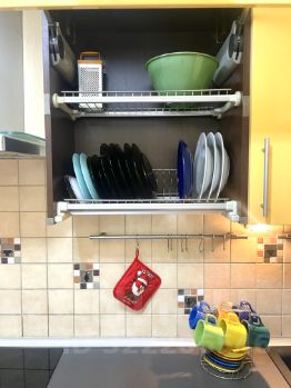 2-х спальная кровать, постельные принадлежности, полотенца, вся необходимая посуда, холодильник, посудомоечная машина, печь СВЧ, электро чайник, плита, стиральная машина автомат, гладильная доска, утюг, сушилка.