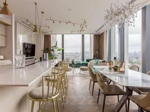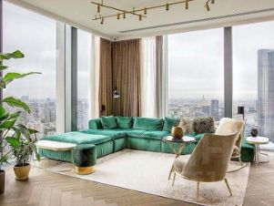 Панорамное остекление открывает захватывающие виды на столицу, наполняя пространство естественным светом и энергией.