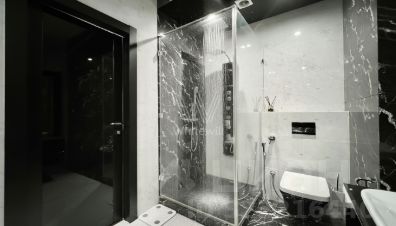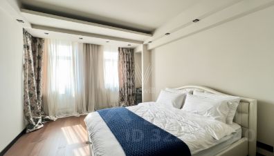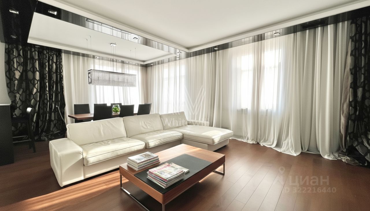 Просторная квартира площадью 130 м² в комплексе "Алые Паруса" на набережной Москвы-реки. Квартира расположена на 15-м этаже. Выполнен дизайнерский ремонт в современном стиле, интерьер украшают мозаичные панно, хрустальные люстры. Больше количество источников света позволяет создавать различные сценарии освещения.