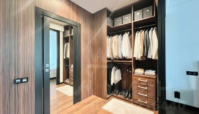Спланирована угловая кухня-гостиная с обеденной зоной, мастер-спальня с собственной ванной комнатой и гардеробной, вторая спальня с вместительными встроенными шкафами, гостевой санузел с душевой, гардеробная, прихожая. Квартира укомплектована мебелью, выполненной на заказ и оборудована бытовой техникой, установлены кондиционеры.