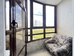 Светлая, чистая, благоустроенная большая 1-комн.квартира 44м2 на 8 этаже 25-этажного уникального монолитно-кирпичного дома бизнес класса у метро Братиславская (2 мин пешком). Жилая комната 22м2, кухня 12м2 с балконом.