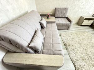 В комнате: спальный гарнитур со шкафом Dятьково Design, двуспальной кроватью с новым ортопедическим матрасом, угловой разбирающийся диван, телевизор, кондиционер.