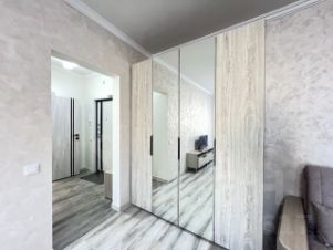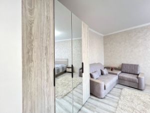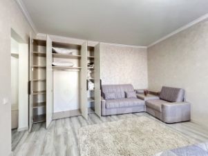 На полу ламинат, на стенах декоративная штукатурка. Окна квартиры выходят во двор, отсутствует шум от дороги.