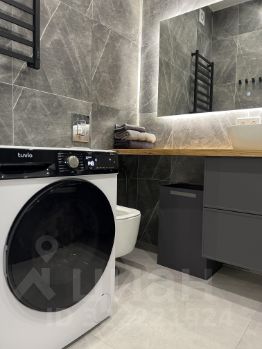 — В санузле "умная" душевая система, стирально-сушильная машина 10 кг, ванна 17070, парящий потолок с подсветкой, гигиенический душ;
