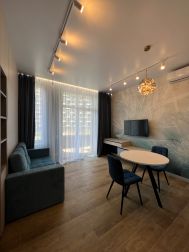 Студия обладает собственным неповторимым дизайном, ремонт выполнен в современном стиле.