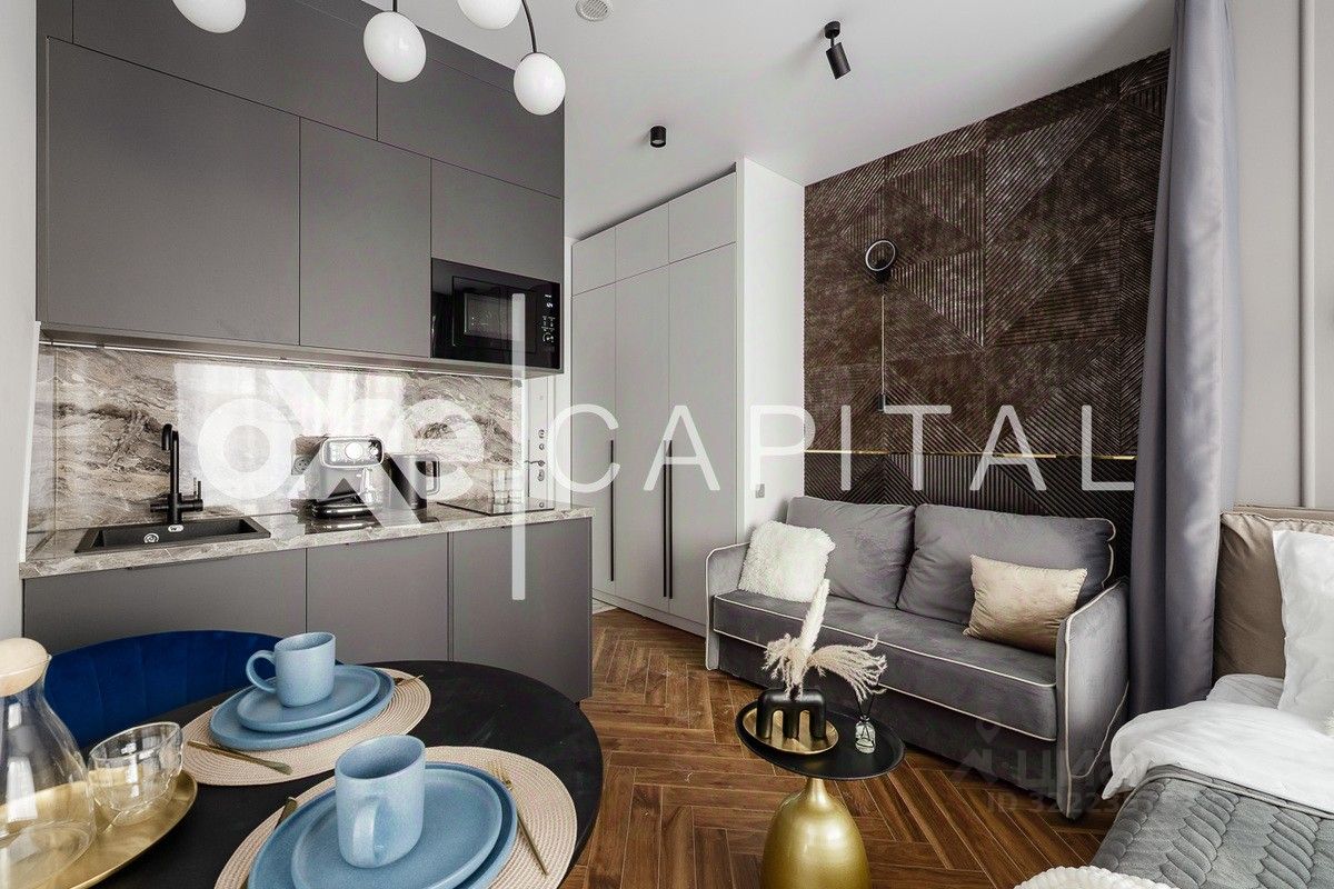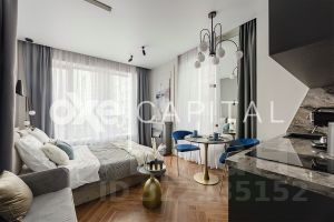 Сдается впервые просторная студия с дизайнерским ремонтом в неоклассическом стиле.