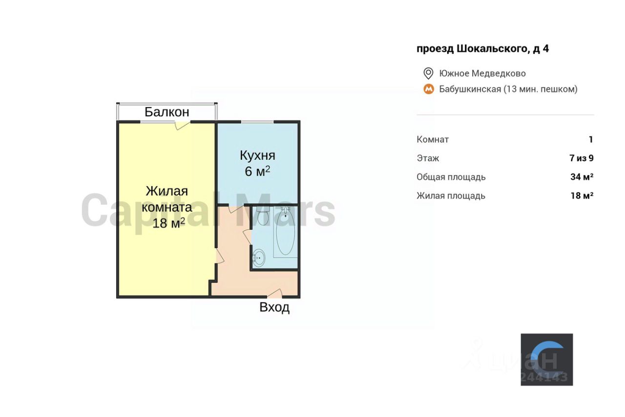Неподалеку от метро "Бабушкинская" предлагается однокомнатная квартира. Жилая комната частично меблирована; в наличии имеются - письменный стол с надстройкой, вместительные комоды и шкафы для предметов гардероба. Кухня оборудована базовым набором бытовой техники, включая духовую печь и стиральную машину. Для дополнительного удобства предусмотрен выход на балкон.