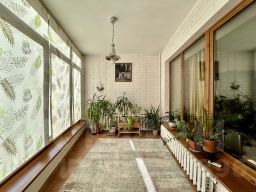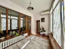 Квартира расположена на 5 этаже, откуда открывается шикарный вид из терассы с зимним садом. Планировка включает в себя просторную кухню-столовую, кабинет, огромную гостинную комнату, мастер спальню и гостевую спальную комнату с балконом. В квартире 2 сан узла: один совмещенный с окном, красивой ванной и душевой кабиной, а второй гостевой санузел в прихожей. Есть гардеробная комнату (которую можно использовать как хоз. блок), и еще небольшое помещение для хранения вещей.