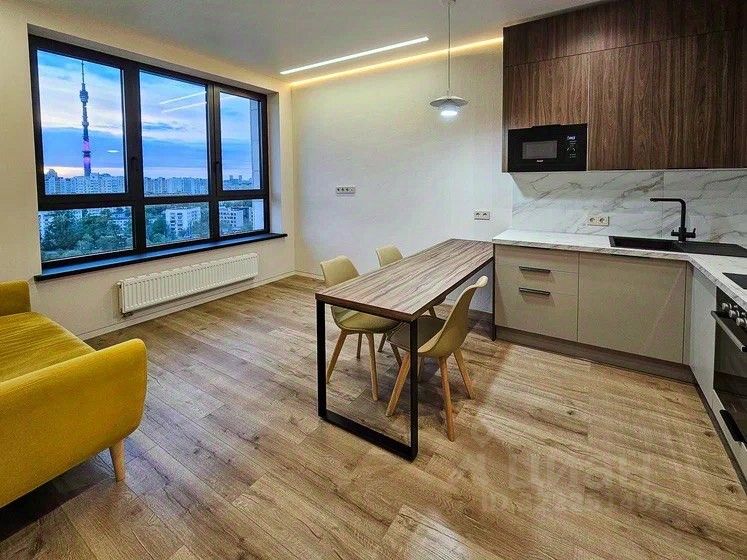 В квартире выполнен дизайнерский ремонт, оснащена всем необходимым для комфортного проживания. Дом расположен в удалении от дороги, из окон открывается прекрасный вид на останкинскую башню.