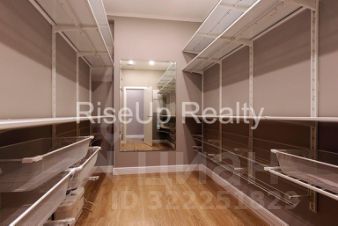 Гардеробная комната оборудована системами хранения для удобного пользования.