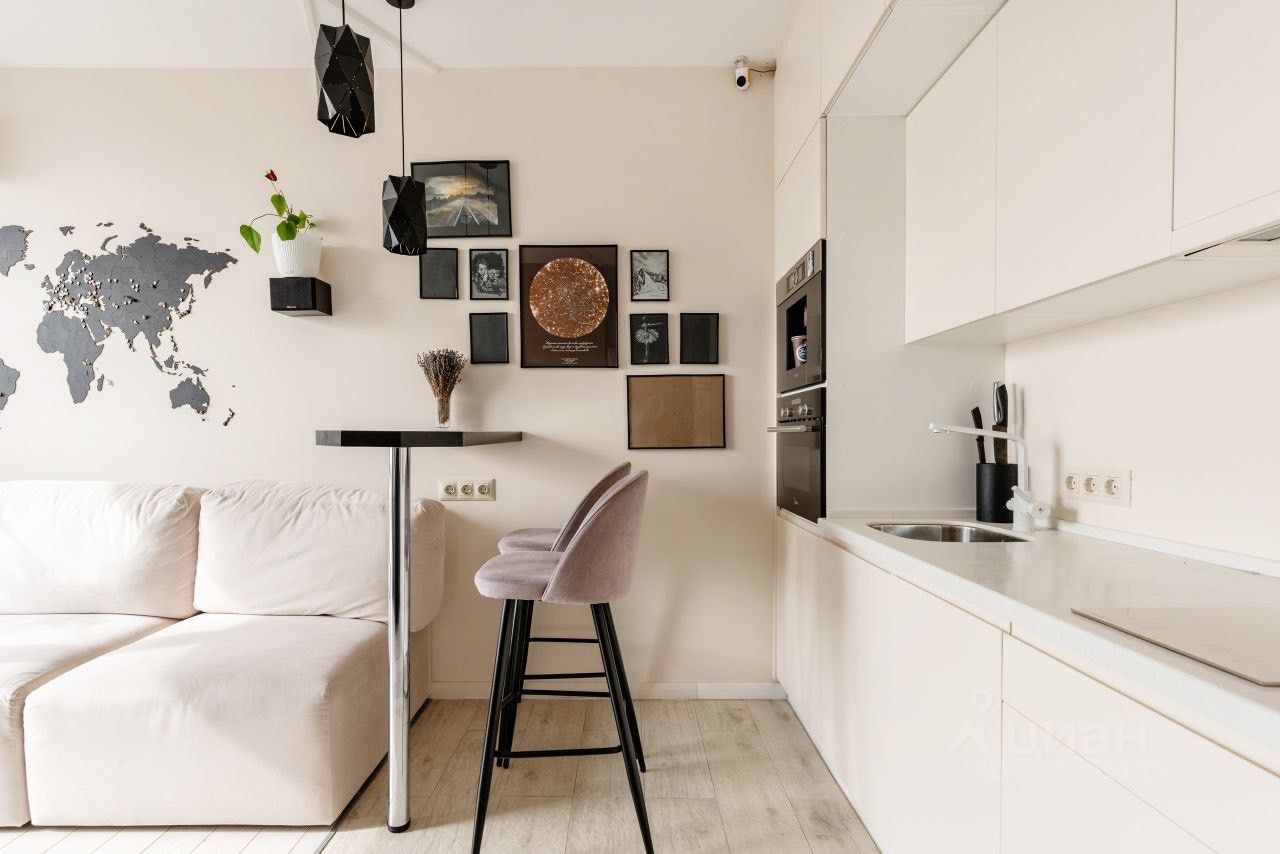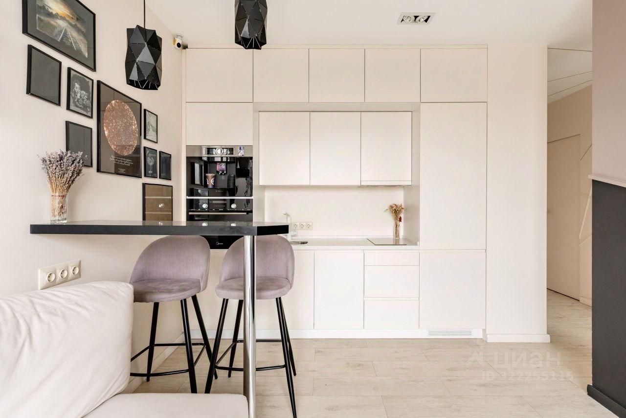 В квартире есть вся необходимая мебель и техника, включая встроенную кофе-машину. Практично и выглядит красиво.