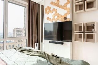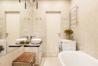 Квартира оборудована системой "умный дом" — можно бесконтактно открывать шторы/воду/свет. Входная дверь открывается с помощью "умного ключа" по коду или отпечатку пальцев