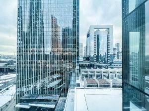 Панорамное остекление открывает захватывающие виды на столицу, наполняя пространство естественным светом и энергией.