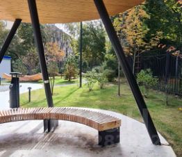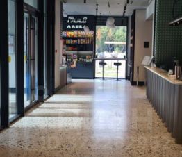 Входная группа жилого комплекса представляет собой Лобби со службой консьерж-сервиса, кофейней и фитнес залом с тренажёрной зоной.