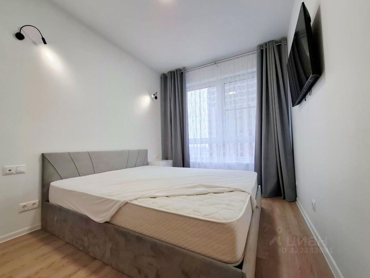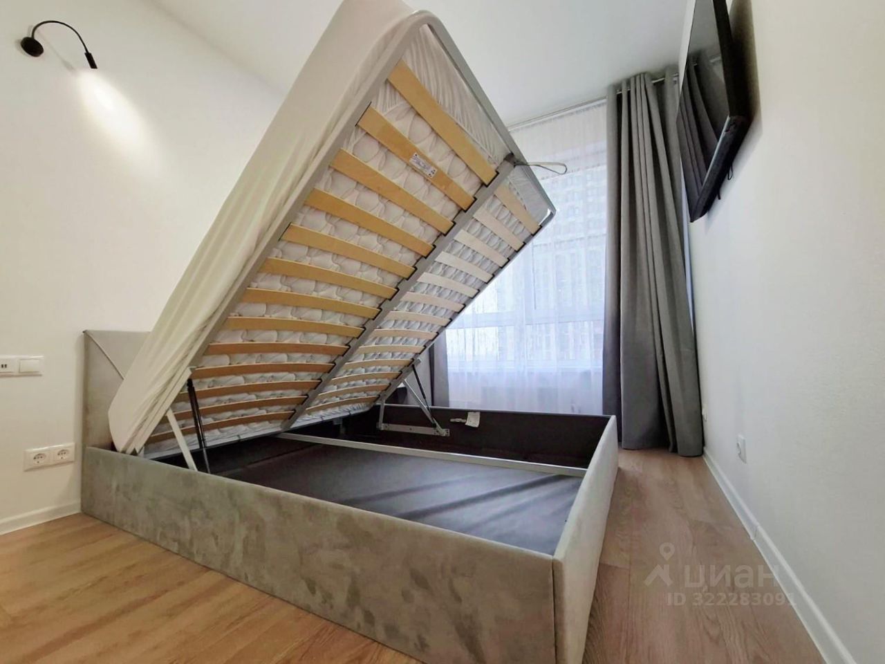 В спальне - удобная кровать с мягким изголовьем 160 на 200 с подьемным механизмом ( можно использовать, как дополнительное место хранения), новый ортопедический матрас, 2х створчатый шкаф, прикроватная тумба, телевизор ЖК. Важно - шторы блэкаут.