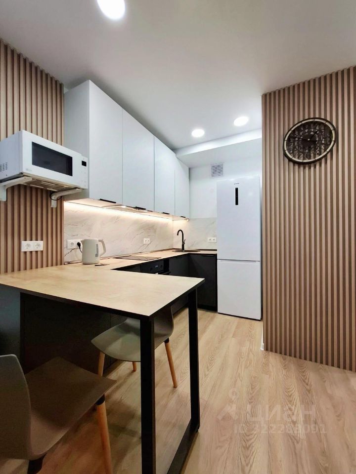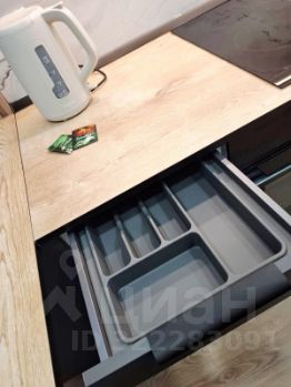 В кухне-гостиной, в зоне приготовления еды - встроенный кухонный гарнитур со всей необходимой встроенной бытовой техникой от ведущих мировых производителей Gorenje: варочная стеклокерамическая панель, духовой шкаф 60 см, 2х камерный холодильник, вытяжка, посудомоечная машина Electrolux 60 см, микроволновая печь, чайник Tefal. Установлена подсветка рабочей поверхности. Установлен фильтр питьевой воды - очистка с обратным осмосом Atoll.