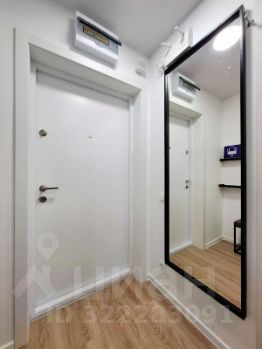 В прихожей открытое вешало, обувница, большое зеркало " в рост" установлен роутер.