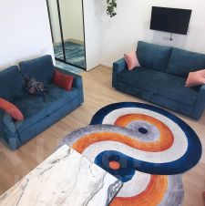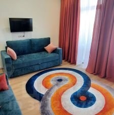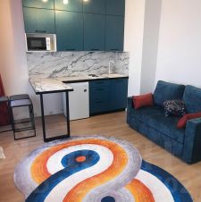 Все предметы мебели и техники новые: Два полноценных дивана трансформера, на которых может расположиться до 4 человек, холодильник, стиральная машина, телевизор, микроволновая печь.