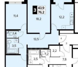 43,9 м²