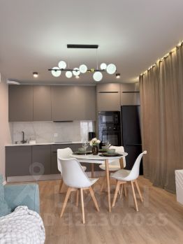 Квартира оборудована кухонным гарнитуром, мебелью и бытовой техникой. Есть: