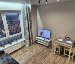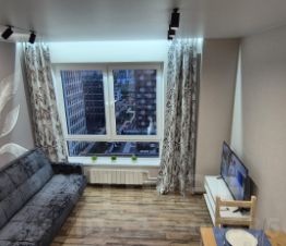 Квартира оформлена в современном дизайнерском стиле. Свет подностью управляется через умный дом, а так же шторы можно закрыть и открыть через Алису. Пространство организовано так, чтобы максимально использовать каждый метр: кухонная зона, обеденная и лаундж зоны, а так же гардеробная. В студии есть вся необходимая мебель и техника — кондиционер, холодильник, телевизор и стиральная машина. Санузел с душевой кабиной. В квартире проведён интернет, поэтому можно сразу подключиться к сети и работать из дома.
