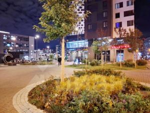Свой внутрений благоустроенный дворик с газонами и лавочками. В доме фитнес WC. Оличная транспортная доступность. Метро пешком - 7-8 минут.