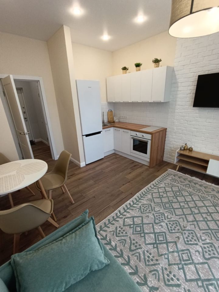 В квартире есть всё необходимое для комфортного проживания: современная мебель в комнате и на кухне, а также полный комплект техники — холодильник, посудомоечная и стиральная машины. Планировка продумана и удобна , кухня совмещена с гостиной . Совмещённый санузел оборудован ванной.