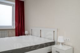 Спальня с прекрасной двуспальной кроватью и ортопедическим дорогим матрасом. Именно кроватью - спать человек должен на кровати , а не на диване. ВНИМАНИЕ! В спальне сделана дорогая и качественная ШУМОИЗОЛЯЦИЯ СТЕНЫ - толщина слоев шумоизоляции более 12 см , нет никаких звуков от соседей ! Никто такого в квартире , не для себя , делать не будет. С кровати вы можете управлять верхним освещением и красивыми ночниками . От солнечных лучей защитят плотные шторы блэкаут. Тюли нет, т.к. виден из окон только лесной массив. В спальне большой и вместительный зеркальный шкаф купе с множеством удобных ящиков .