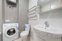 В ванной установлена стиральная машина и бойлер, который позволит с комфортом перенести сезонной отключение горячей воды.