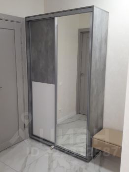 В прихожей установлен вместительный шкаф-купе с отделением для хранения гладильной доски, сушки и пылесоса и с отделением для одежды и обуви и так-же мягкий пуф, вешалка и обувница.