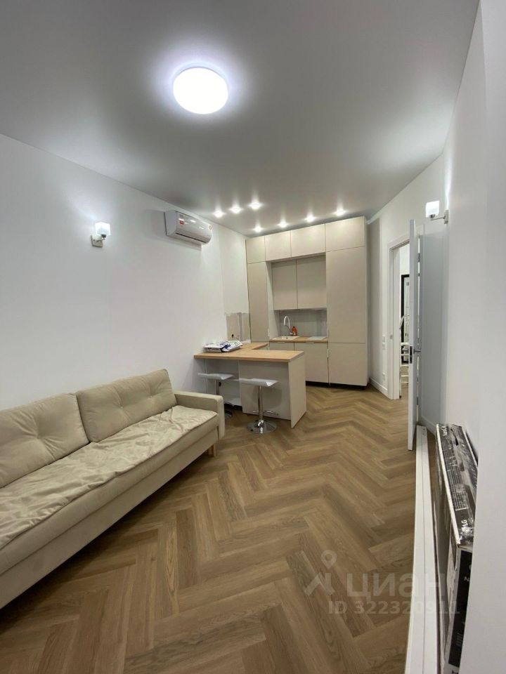 Общая площадь квартиры — 39 кв. м. из которых 15 кв. м. занимает изолированная кухня- гостиная (диван раскладной), и изолированная спальная комната ( кровать 180), гардеробная, санузел.