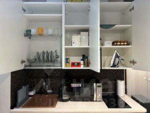 Полностью оборудованная кухня — плита, духовка, вытяжка, микроволновка, чайник и вся необходимая посуда