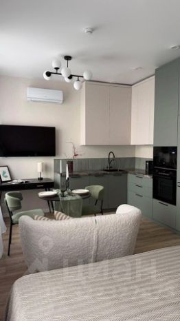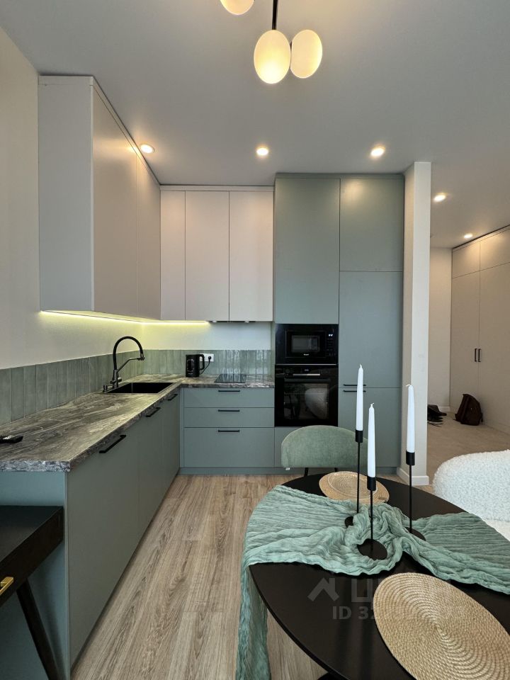 Качественный евроремонт, абсолютно новые мебель и техника, всё необходимое для комфортного проживания: холодильник, варочная панель, духовой шкаф, микроволновая печь, посудомоечная и стиральная машины, вытяжка, кондиционер, телевизор, утюг.