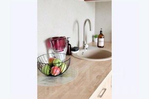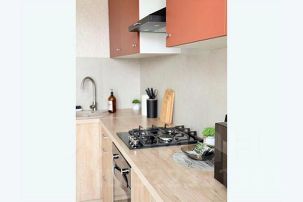 — Полноценная кухня: плита, микроволновка, холодильник, набор посуды, кофе, чай, конфеты и базовые специи уже ждут