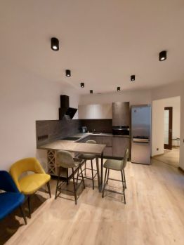 Эксклюзив! Сдаётся стильная, уютная евродвушка с большой кухней-гостиной и спальней. Квартира после ремонта! Вся бытовая техника и мебель для Вашего комфортного проживания в наличии в отличном состоянии! Имеется кондиционер, холодильник, посудомоечная машина, стиральная машина, варочная панель и духовой шкаф, вытяжка, посуда, телевизор (под запрос). Абсолютно новая стильная мебель на кухне с барной стойкой.
