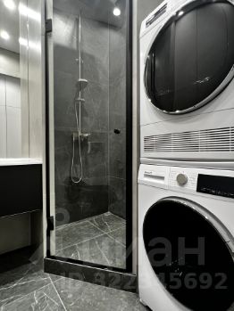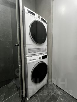 Кухня оснащена необходимой техникой: плитой, посудомоечной машиной, вытяжной, в с/у установлены стиральная и сушильная машины.