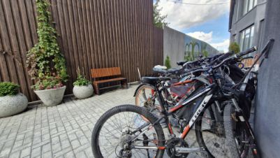 Во дворе оборудовано место для любителей почитать книгу или позавтракать под открытым небом. Здесь же можно оставить свой
