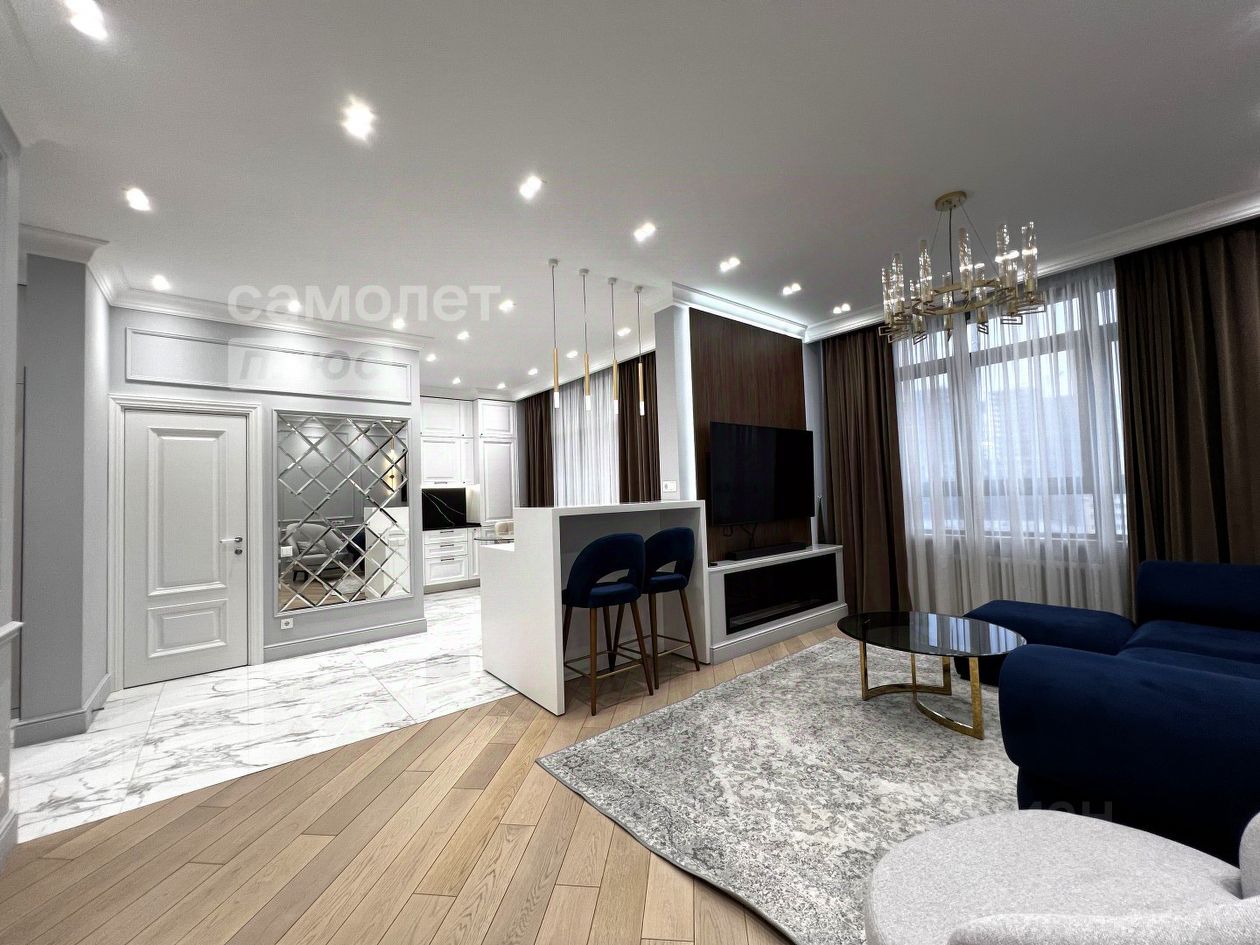 Дизайнерский ремонт в авторском стиле. Из окон открывается красивый вид на "Москва Сити".